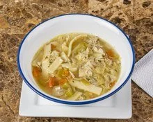 A comforting classic with tender chicken, noodles, and broth.